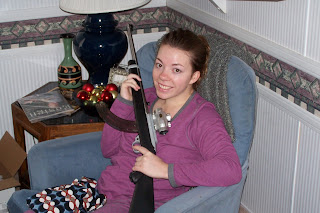 Jessica sporting my gun. She looks like a true hunter!...minus the camo.